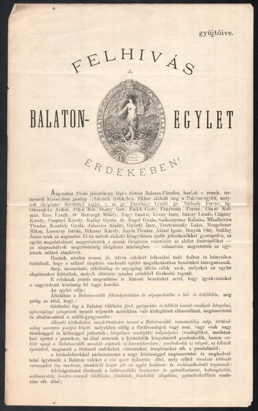 cca 1882 Felhívás / gyűjtőív a Balaton-Egylet érdekében, kitöltetlen https://www.darabanth.com/de/479-Fernauktion/479.0/Kunst-Dokumente-andere-Sammelgebiete/Drucksachen~1000013/cca-1882-Felhivas-gyujtoiv-a-Balaton-Egylet-erdekeben-kitoltetlen~II3270519