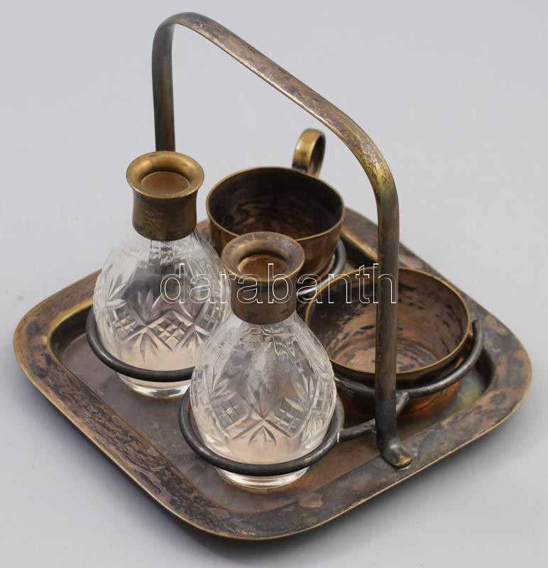 Beschreibung: Antik ezüstözött szervírozó szett, hiánnyal, 14x14x13 cm