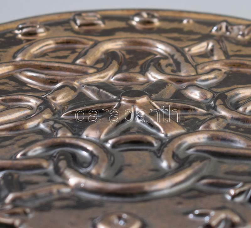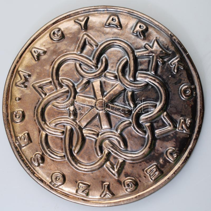 Beschreibung: "Magyar Közjegyzőség" (A Magyar Országos Közjegyzői Kamara címere). Lüszter mázas kerámia. Jelzés nélkül, kis repedéssel, d: 28 cm