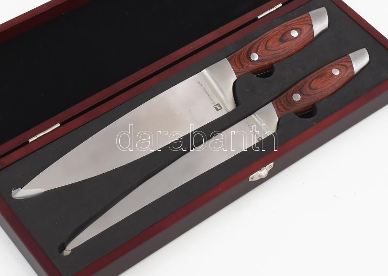 Beschreibung: Schwarzwolf kés pár, fa dobozában.