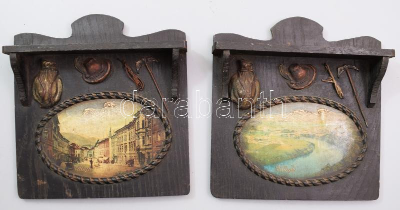 Beschreibung: cca 1930 Villach látképpel festett falidísz pár, 19x20 cm