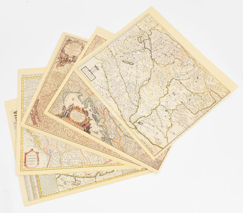 Beschreibung: 5 db régi (XVII-XVIII. századi) Magyarország-térkép reprintje, 30x35 cm körüli méretben