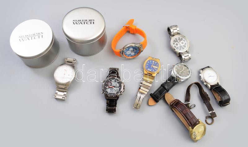 Beschreibung: 8 db kvarc karóra, mind működik, benne Puma, kronográfos, stb órák