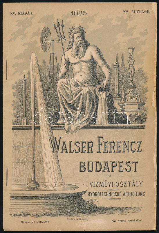 Beschreibung: 1885 Walser Ferenc Budapest vízművi osztály. Képes termék katalógus 72p.