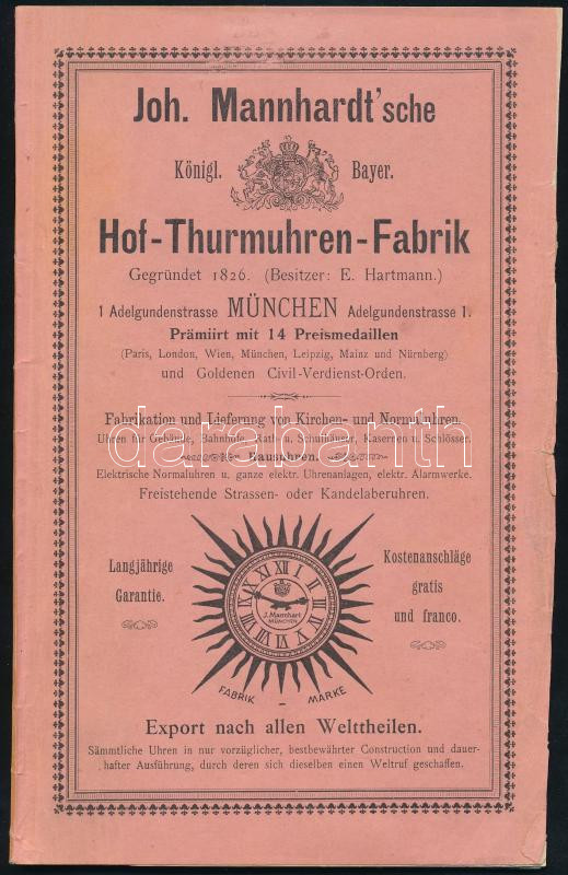 cca 1890 Képes toronyóra katalógus. Joh. Mannhardt. 44p. Egészoldalas ... https://www.darabanth.com/de/479-Fernauktion/479.0/Kunst-Dokumente-andere-Sammelgebiete/Werbungen~1000002/cca-1890-Kepes-toronyora-katalogus-Joh-Mannhardt-44p-Egeszoldalas-es-kihajthato~II3271798