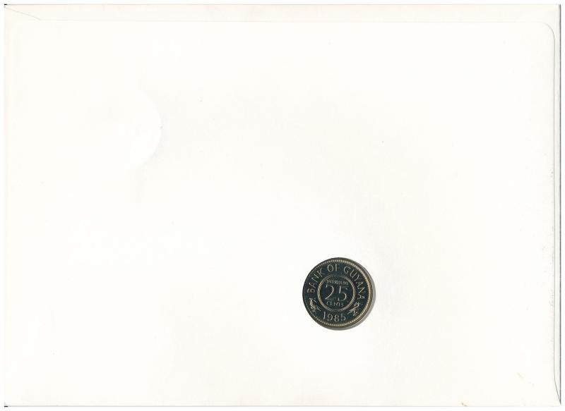 Guyana 1985. 25c, felbélyegzett borítékban, bélyegzéssel, német nyelvű leírással T:UNC Guyana 1985. 25 Cents in envelope with stamp and cancellation, with German description C:UNC