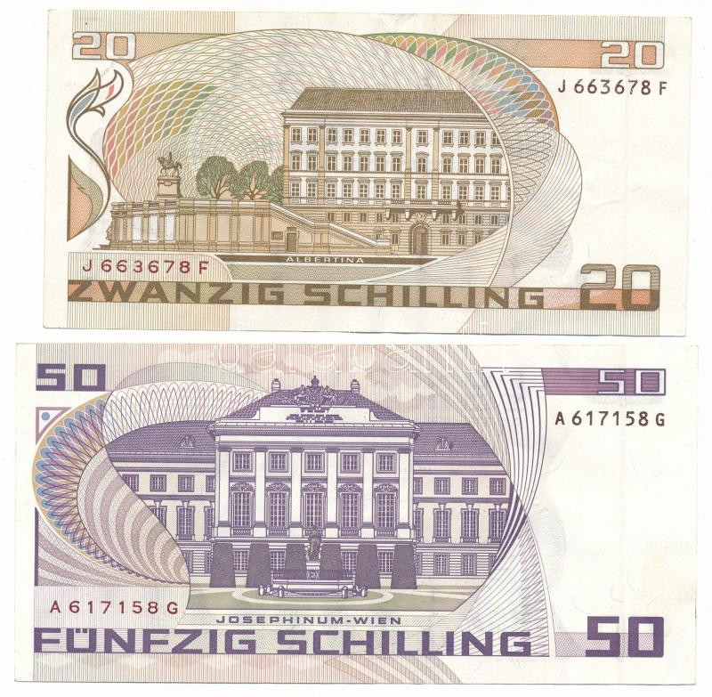 Ausztria 1986. 20Sch "J 663678 F" + 50Sch "A 617158 G" T:F