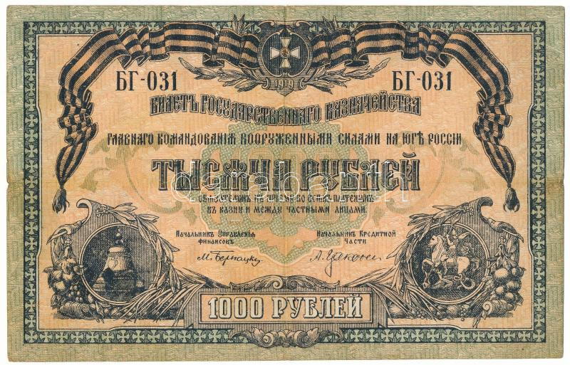 Orosz Polgárháború / Dél-Oroszország / Wrangel Hadserege 1919. 1000R vízjeles változat T:F szép papír