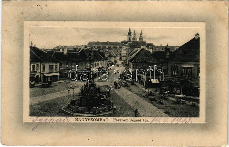 1913 Nagyszombat, Tyrnau, Trnava; Ferenc József tér, Szentháromság szo... https://www.darabanth.com/de/480-Fernauktion/480.0/Ansichtskarten/Slowakei~1000007/1913-Nagyszombat-Tyrnau-Trnava-Ferenc-Jozsef-ter-Szentharomsag-szobor-uzletek-piac-square-~II3277864