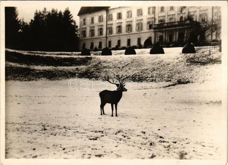 Felsőelefánt, Szent János Elefánt, Nyitra-Szent-János, Oberelefant, Horné Lefantovce; Edelsheim-Gyulai kastély télen, szarvas / castle with stag in the winter. photo (vágott / cut)