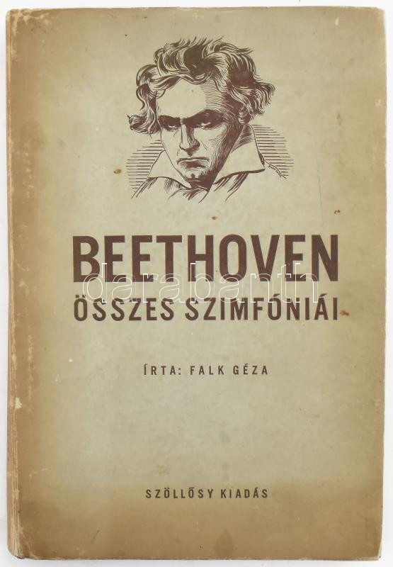 Falk Géza: Beethoven összes szimfóniái. Beethoven élete, emberi és művészi problémái, összes szimfóniáinak elemzése és ismertetése. Bp., 1943., Szöllősy. Bánó Endre rajzaival. Kiadói félvászon-kötés, kopott, foltos kiadói papír védőborítóban, laza fűzéssel.