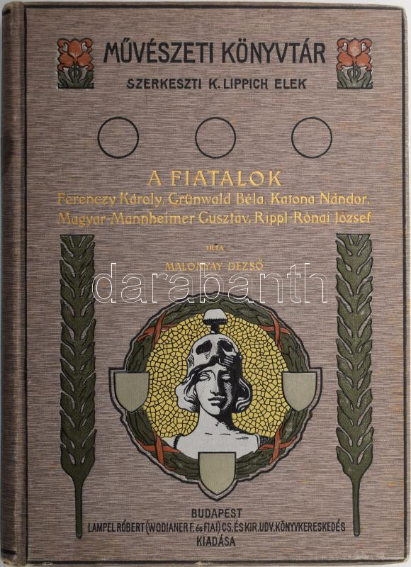 Malonyay Dezső: A fiatalok. Ferenczy Károly, Grünwald Béla, Katona Nándor, Magyar-Mannheimer Gusztáv, Rippl-Rónai József. Művészeti Könyvtár. Bp., 1906, Lampel R. (Wodianer F. és Fiai). Gazdag szövegközti és egészoldalas, fekete-fehér képanyaggal illusztrálva. Kiadói aranyozott, dombornyomott, festett, szecessziós egészvászon-kötés, a gerincen kisebb elszíneződéssel és apró kopásnyomokkal, két lapon magánkönyvtári bélyegzéssel, néhány kevés lap szélén ázásnyommal.