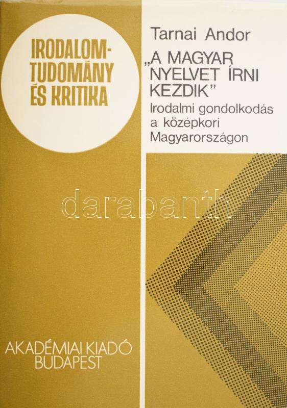 Tarnai Andor: ,,A magyar nyelvet írni kezdik". Irodalmi gondolkodás a középkori Magyarországon. Irodalomtudomány és Kritika. Bp., 1984, Akadémiai Kiadó. Kiadói egészvászon-kötés, kiadói papír védőborítóban.