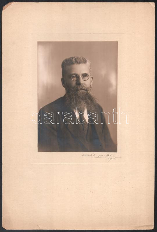 1925 Vajda M. Pál (1874-1945) budapesti fényképész aláírt, datált és matricával jelzett, vintage műtermi felvétele (szakállas úr), 11x15 cm, karton 20x31 cm