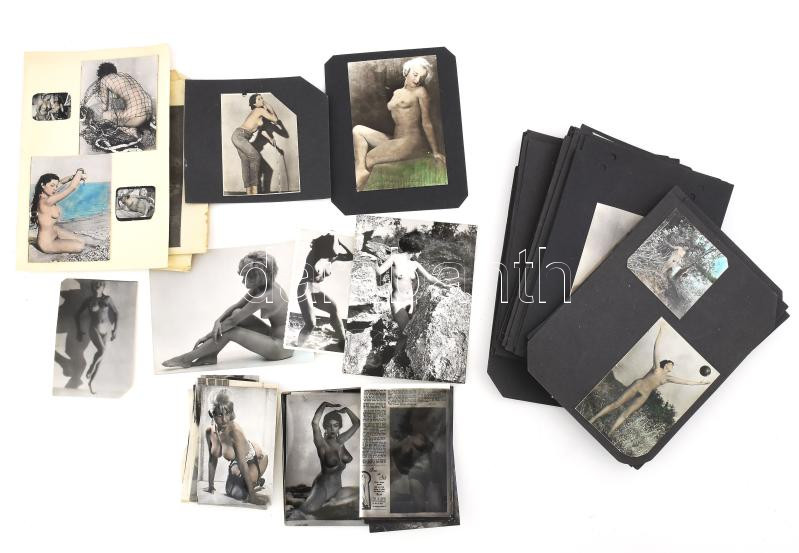 Beschreibung: Retró erotikus fotógyűjtemény, közte színezett fotók, újságkivágások is, változó méretben és állapotban
