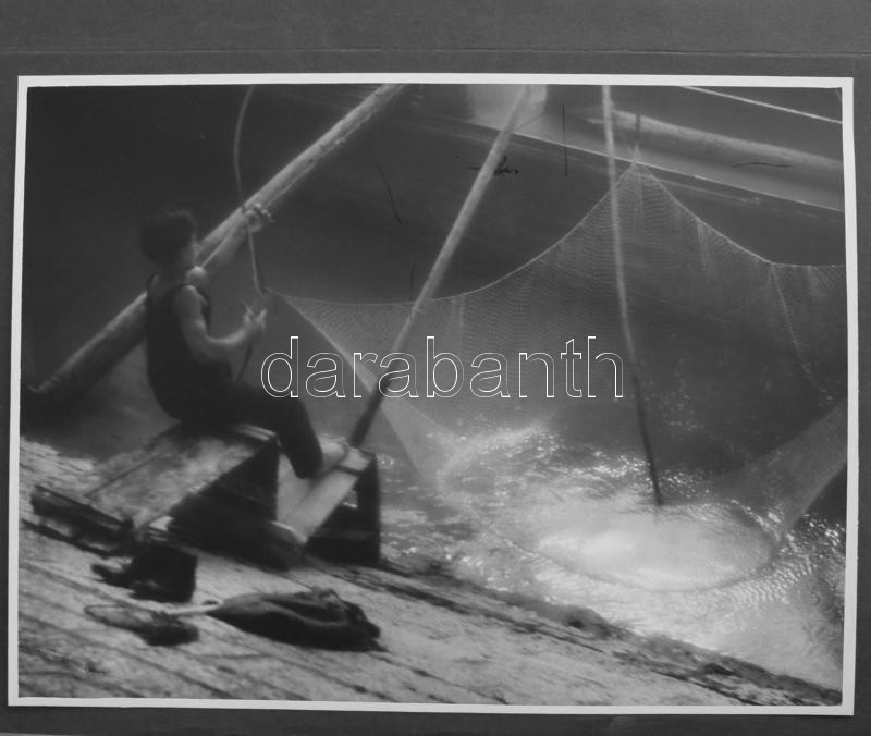Beschreibung: Vidarény Iván (1887-1982): Halász az újpesti rakparton (1914) a művész által aláírt kartonon vintage fotó nagyítás 39x30 cm (kis felületi karcokkal)