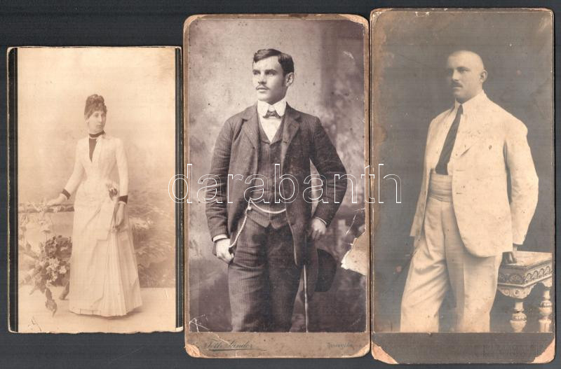 Beschreibung: cca 1880-1915 Keményhátú portrék a Dunky fivérek kolozsvári műterméből, 3 db, vágott, sérült karton, 17×10,5 és 21×11 cm közötti méretekben