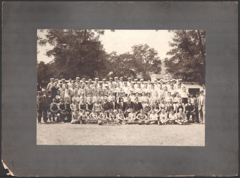 cca 1900-1910 Törekvés SE vezetőinek és sportolóinak csoportképe, köztük kitüntetéseket viselőkkel; nagyméretű, kartonra kasírozott fotó, a kartonon sarokhiánnyal, 19,5x28,5 cm (karton: 29,5x40 cm)