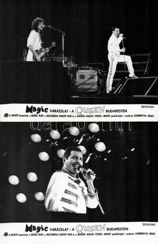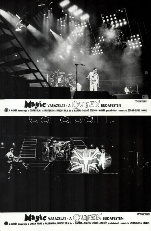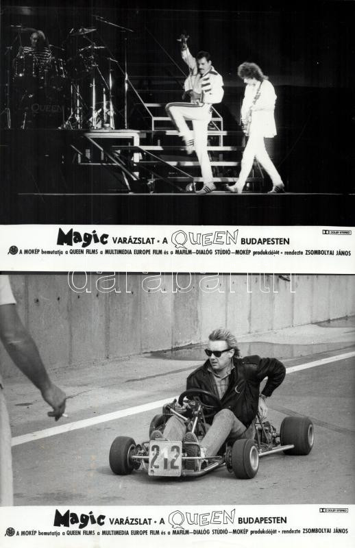 cca 1985 ,,Magic varázslat - a Queen Budapesten" című magyar film jelenetei és szereplői, 13 db vintage produkciós filmfotó (vitrinfotó, lobbyfotó) ezüst zselatinos fotópapíron, a használatból eredő (esetleges) kisebb hibákkal, 18x24 cm