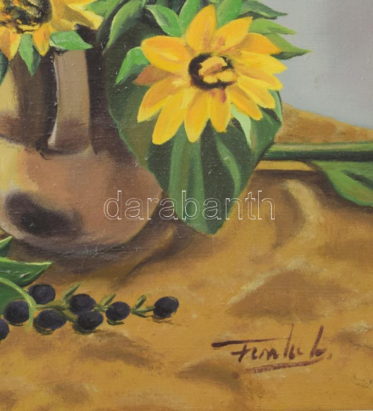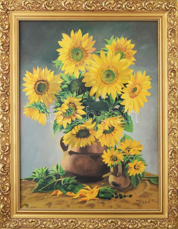 Finta László (1944-): Napraforgók. Olaj, vászon. Jelezve jobbra lent. ... https://www.darabanth.com/de/480-Fernauktion/480.0/Gemalde-und-Grafiken/Gemalde-und-Grafiken~500001/Finta-Laszlo-1944-Napraforgok-Olaj-vaszon-Jelezve-jobbra-lent-Dekorativ-fakeretben-80x60~II3273328
