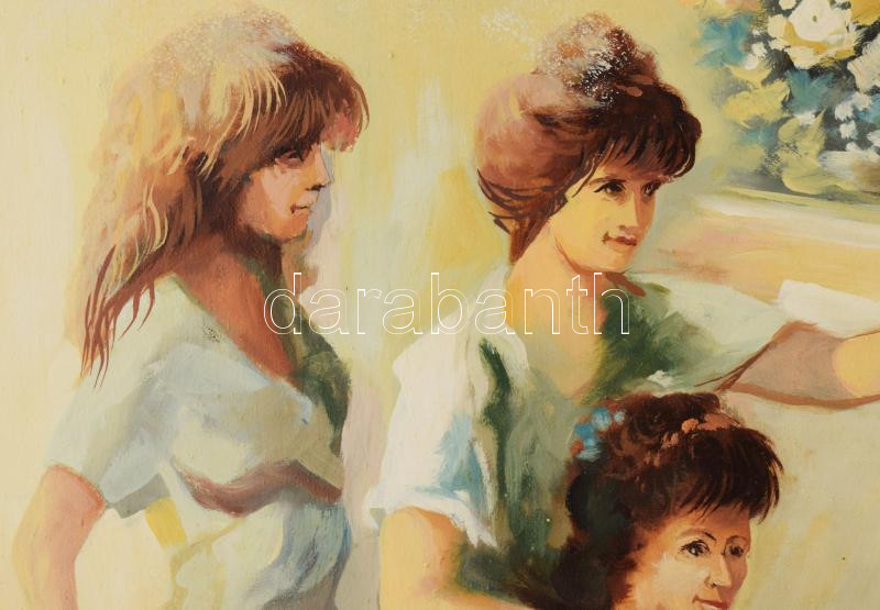 Beschreibung: Finta László (1944-): Zongorázó hölgyek. Olaj, vászon. Jelezve jobbra lent. Dekoratív fakeretben, 60x50 cm.