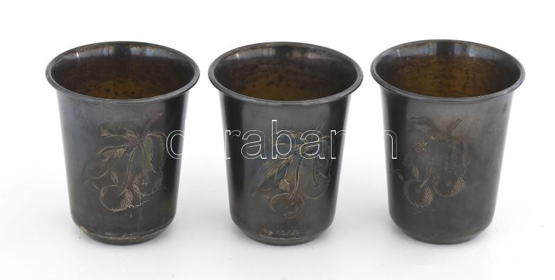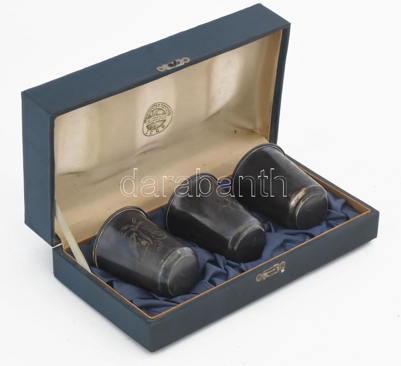 Beschreibung: Orosz ezüst (Ag) pálinkás pohár szett, 3 darab pohár díszdobozban, jelzett, nettó: 162g