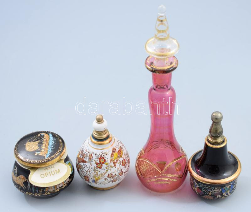 4 darab parfümös üveg, közte antik pácolt üveg, m: 15 cm https://www.darabanth.com/de/480-Fernauktion/480.0/Kunst-Dokumente-andere-Sammelgebiete/Design-Mode~500012/4-darab-parfumos-uveg-kozte-antik-pacolt-uveg-m-15-cm~II3278346