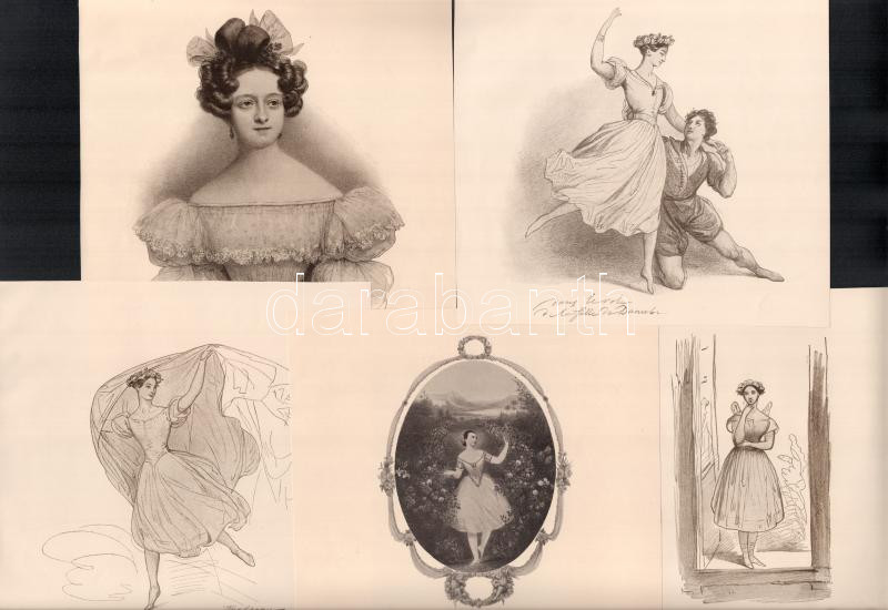 Beschreibung: 19. sz. vége, de Voisin grófné Marie Taglioni (1804-1884) híre balett-táncosnő művészete nyomatokon, 10 db, vegyes méretben