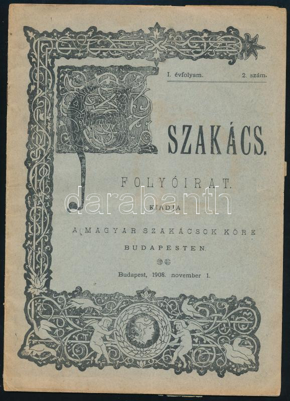 1908 Bp., A Szakács folyóirat I. évfolyamának 2. száma, törésnyommal, ... https://www.darabanth.com/de/480-Fernauktion/480.0/Kunst-Dokumente-andere-Sammelgebiete/Drucksachen~1500018/1908-Bp-A-Szakacs-folyoirat-I-evfolyamanak-2-szama-toresnyommal-hianyos-hatlap-11p~II3278372