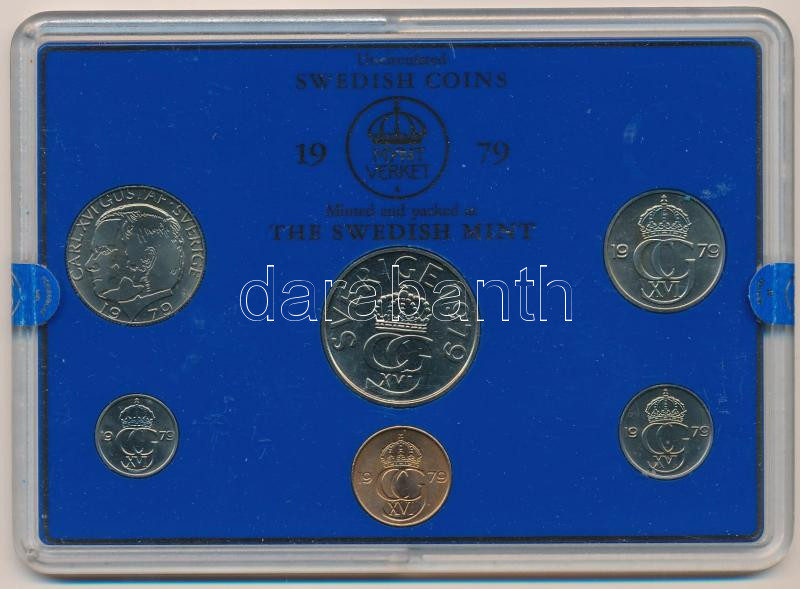 Svédország 1979. 5ö - 5K (6xklf) forgalmi sor műanyag tokban T:UNC eny... https://www.darabanth.com/de/480-Fernauktion/480.0/Numismatik/Auslandische-Kursmunzsatze~2000018/Svedorszag-1979-5o-5K-6xklf-forgalmi-sor-muanyag-tokban-TUNC-enyhen-karcos-tok-pici-pati~II3265975