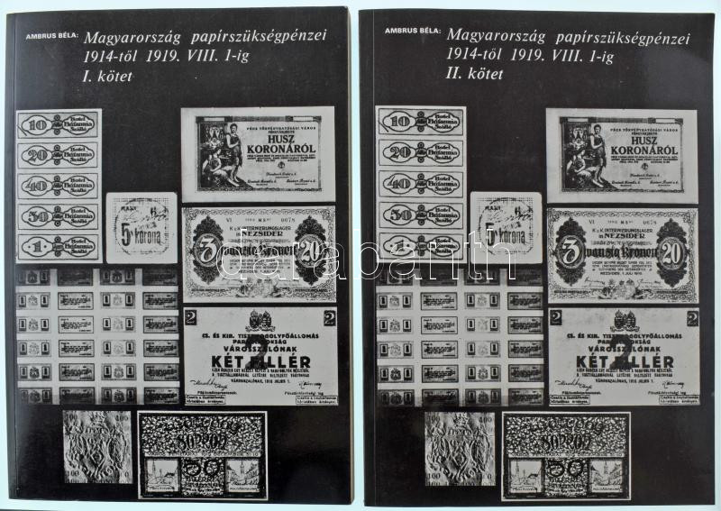 Ambrus Béla: Magyarország papírszükségpénzei 1914-től 1919. VIII. 1-ig. I. és II. kötet. Magyar Éremgyűjtők Egyesülete, Budapest, 1986. Újszerű állapotban.