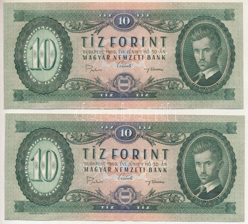 Beschreibung: 1969. 10Ft (2x) sorszámkövetők "A 176 002309 - A 176 002310" T:F szép papír Adamo F7