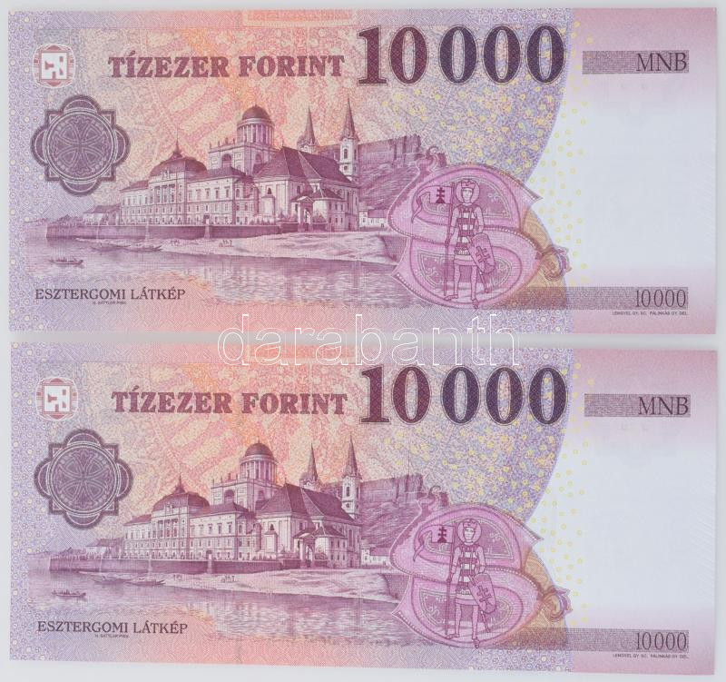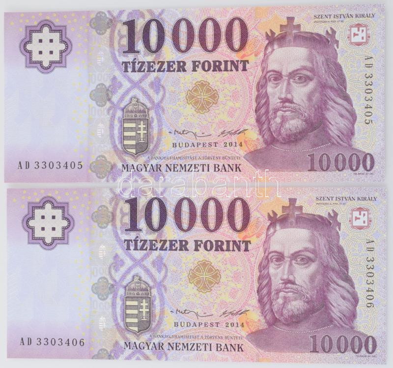 2014. 10.000 Forint (2x) consecutive serials "AD 3303405 - 3303406" C:UNC-AU