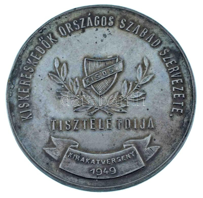 1949. "Kiskereskedők Országos Szabad Szervezete Tiszteletdíja - Kiraka... https://www.darabanth.com/de/480-Fernauktion/480.0/Numismatik/Ungarische-Gedenkmunzen-Plaketten~2000012/1949-Kiskereskedok-Orszagos-Szabad-Szervezete-Tiszteletdija-Kirakatverseny-1949-egyoldalas~II3281113