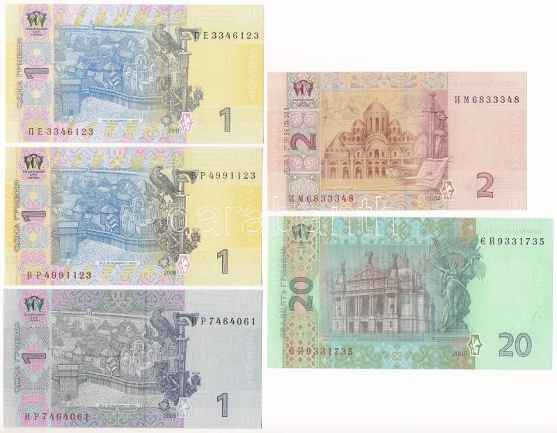 U... https://www.darabanth.com/de/480-Fernauktion/480.0/Numismatik/Weltweit-Banknoten~2000016/Ukrajna-2004-2Hr-plus-2005-1Hr-plus-20Hr-plus-2006-2011-1Hr-2xklf-T-UNCUkraine-2004-2-Hryvni-plus-2005~II3281036