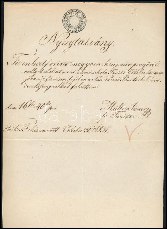 1851 Székesfehérvár, 3kr szignettás okirat (nyugtatvány) https://www.darabanth.com/de/480-Fernauktion/480.0/Philatelie-und-Postgeschichte-Ungarn/Stempelmarken~500019/1851-Szekesfehervar-3kr-szignettas-okirat-nyugtatvany~II3281002