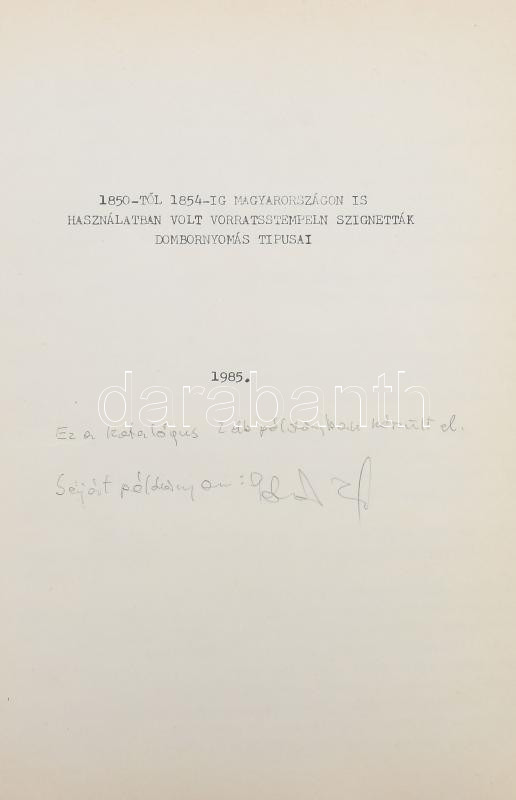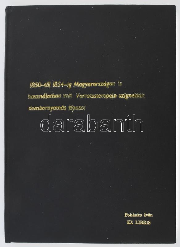 Pohánka Iván: 1850-től 1854-ig Magyarországon is használatban volt Vorratsstempeln szignetták dombornyomás típusai. H.n., 1985, magánkiadás. Egészvászon-kötésben, jó állapotban. A szerző saját kezű aláírásával és bejegyzésével: ,,Ez a katalógus 2 db példányban készült el. Saját példányom."