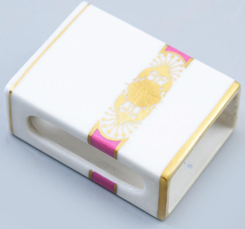 Beschreibung: Herendi D'or jubileumi lila mintás gyufatartó, jelzett, m: 6,5 cm