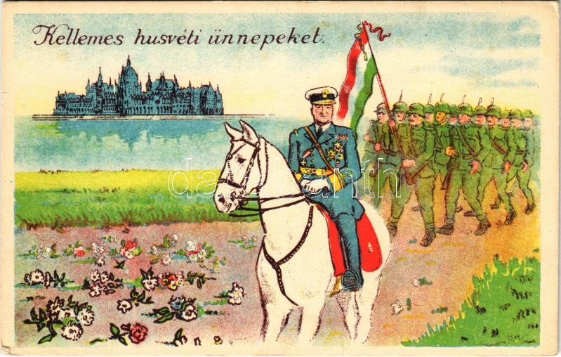 Kellemes húsvéti ünnepeket! Horthy Miklós fehér lovon bevonuláskor / H... https://www.darabanth.com/de/481-Fernauktion/481.0/Ansichtskarten/Irredenta~1000066/Kellemes-husveti-unnepeket-Horthy-Miklos-feher-lovon-bevonulaskor-Hungarian-irredenta-entry-of~II3062697