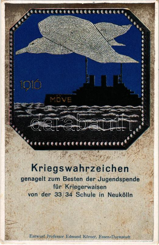 1916 Möve. Kriegswahrzeichen genagelt zum Besten der Jugendspende für Kriegerwaisen von der 33/34 Schule Neukölln. Entwurf Professor Edmund Körner (EK)