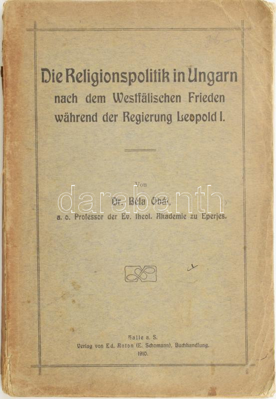 Obál Béla: Die Religionspolitik in Ungarn... während der Regierung Leo... https://www.darabanth.com/de/481-Fernauktion/481.0/Bucher/Bucher-Geschichte~2000021/Obal-Bela-Die-Religionspolitik-in-Ungarn-wahrend-der-Regierung-Leopold-I-Halle-1910-Ed~II3286124
