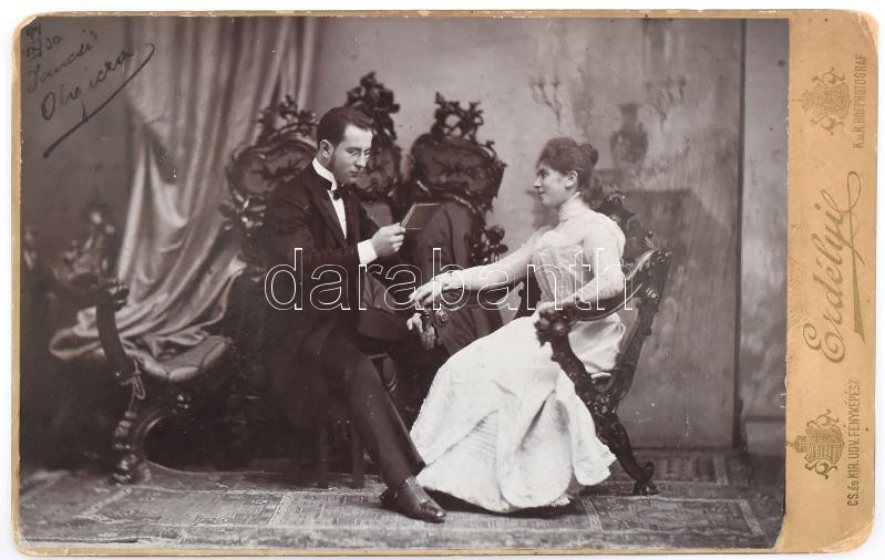 1899 Férfi és nő beállított műtermi fotója, Erdélyi műterme Budapest, ... https://www.darabanth.com/de/481-Fernauktion/481.0/Fotografie/Foto~2000001/1899-Ferfi-es-no-beallitott-mutermi-fotoja-Erdelyi-muterme-Budapest-sarokhibakkal-21-5x13-5-cm~II3283598