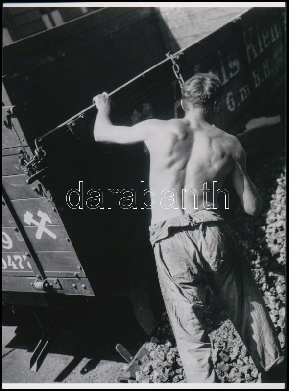 Beschreibung: 1932 Berlin, Besnyő Éva (1910-2003) magyar származású holland fotográfus felvétele (Szénrakodó), 1 db modern nagyítás, jelzés nélkül, 21x15 cm