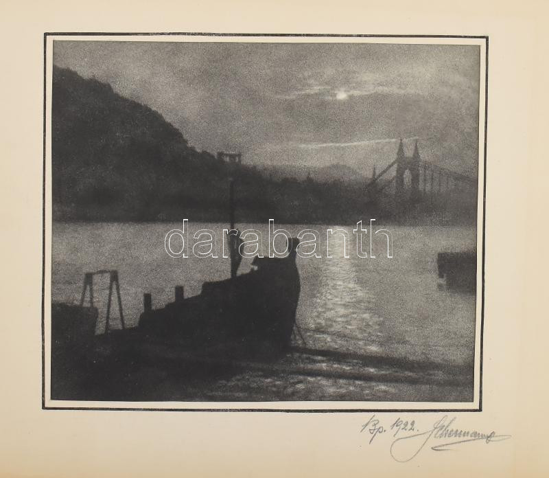 Schermann József az 1920. október 30. és november 15. között az Iparművészeti Múzeumban rendezett III. művészi fényképkiállítás résztvevője: Alkony a Dunán (1922). Jelzett, vintage fotóművészeti alkotás, kiállítási számmal 20x18 cm / 33x25 cm