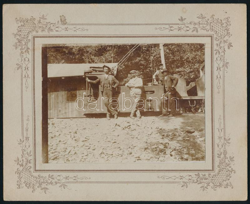 Beschreibung: cca 1900 Aknaszlatina, Akna Slatina, Slatinské Doly, Szolotvino, Solotvyno (Máramaros, UA,); Bányászok Fotó 12x9 cm, kartonon 20x16 cm