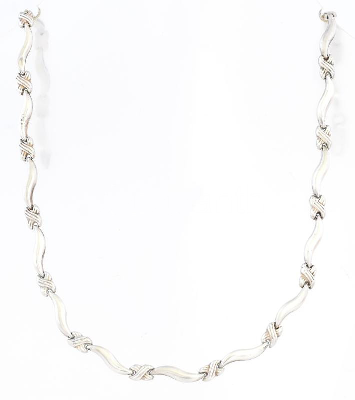 Ezüst(Ag) hullámmintás glídes-masnis nyaklánc, jelzett, h: 42 cm, nett... https://www.darabanth.com/de/481-Fernauktion/481.0/Juwellen-und-Kunstobjekte-aus-Edelmetall/Juwellen-und-Kunstobjekte-aus-Edelmetall~2000039/EzustAg-hullammintas-glides-masnis-nyaklanc-jelzett-h-42-cm-netto-12-g~II3288770