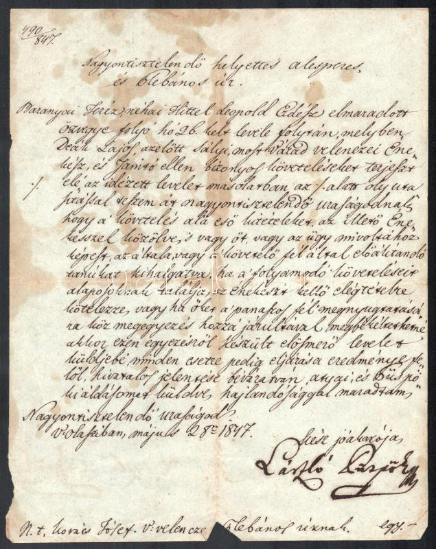 1847 Váradolaszi, Bémer László (1784-1862) nagyváradi püspök aláírása ... https://www.darabanth.com/de/481-Fernauktion/481.0/Kunst-Dokumente-andere-Sammelgebiete/Dokument~1500021/1847-Varadolaszi-Bemer-Laszlo-1784-1862-nagyvaradi-puspok-alairasa-Laszlo-puspok-egyhazi~II3284509