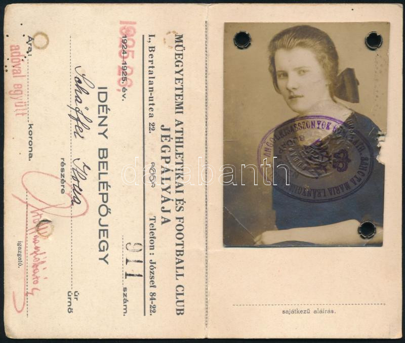 1924 Műegyetemi Athletikai és Football Club Jégpálya fényképes idény b... https://www.darabanth.com/de/481-Fernauktion/481.0/Kunst-Dokumente-andere-Sammelgebiete/Dokument~1500021/1924-Muegyetemi-Athletikai-es-Football-Club-Jegpalya-fenykepes-ideny-belepojegy~II3285105