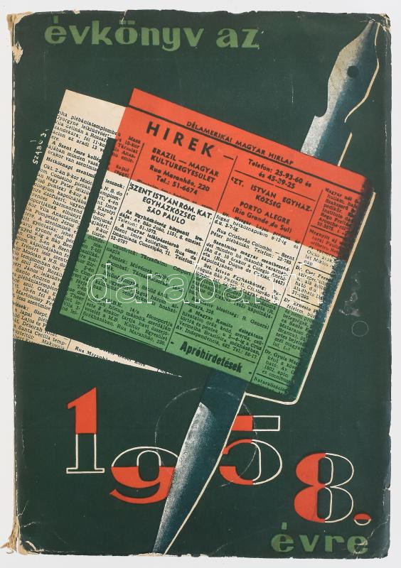 1958 Évkönyv az 1958. évre, Délamerikai Magyar Hírlap évkönyve, 460p https://www.darabanth.com/de/481-Fernauktion/481.0/Kunst-Dokumente-andere-Sammelgebiete/Drucksachen~2000013/1958-Evkonyv-az-1958-evre-Delamerikai-Magyar-Hirlap-evkonyve-460p~II3272349