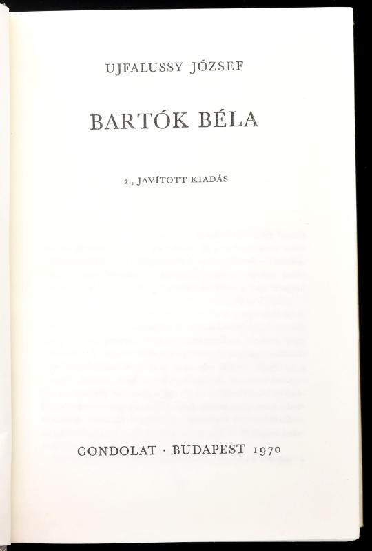 Beschreibung: Bartók Béláné Pásztory Ditta (1903-1982) zongoraművész, Bartók Béla feleségének aláírása könyvben: Ujfalussy József: Bartók Béla. Bp., 1970, Gondolat. Második, javított kiadás. Kiadói egészvászon-kötés, minimálisan sérült kiadói papír védőborítóban. Megjelent 4000 példányban.